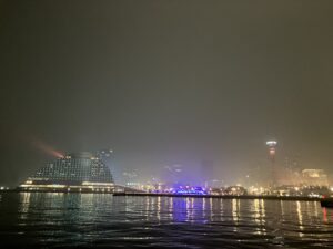 一般公開を行っていて普段見ることのできない船内を見学できました。 また、入港中の日没から22時までイルミネーション点灯を行い、港を華やかに彩ります。